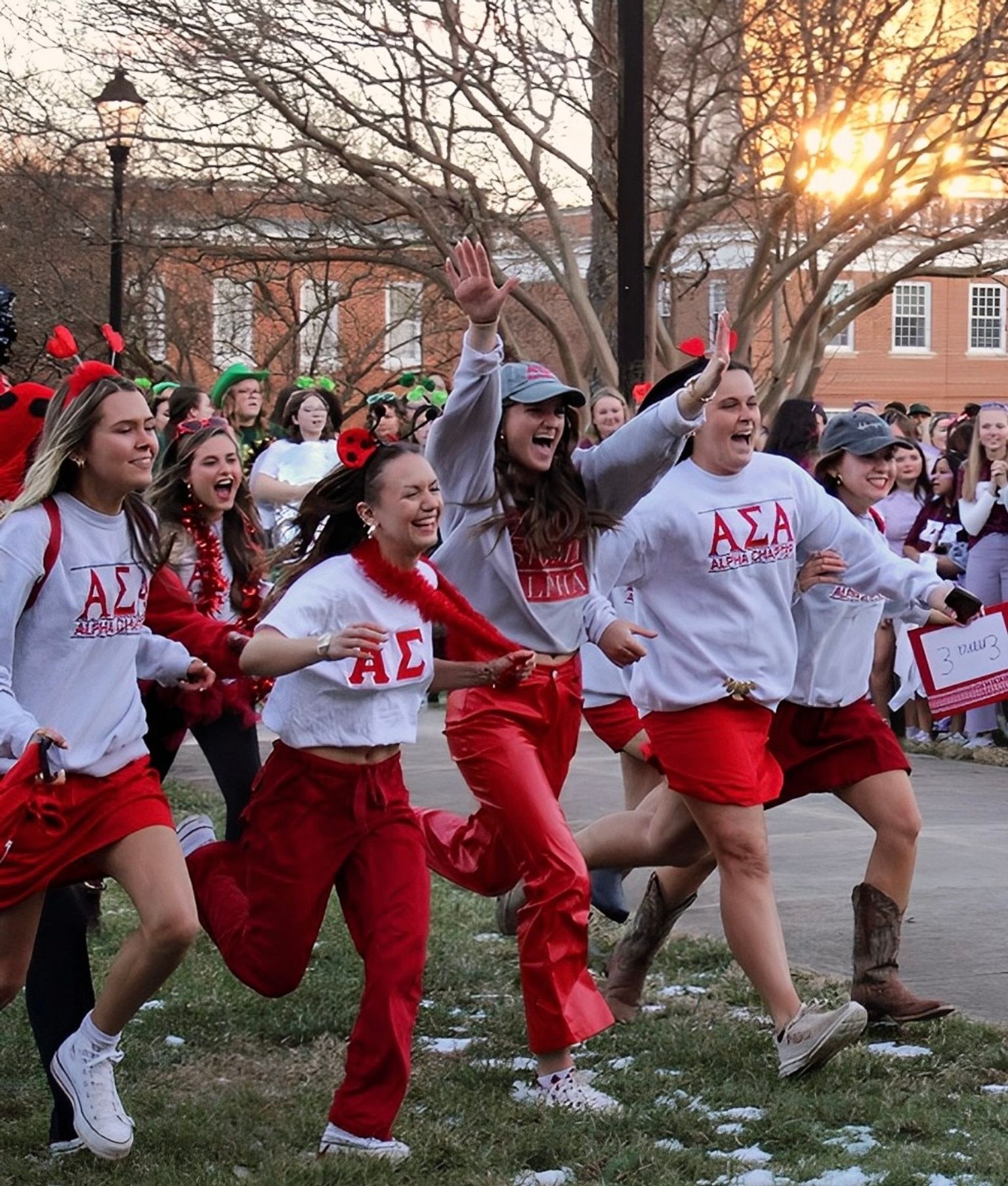 Every week, chapters of Alpha Sigma Alpha have a chapter meeting where sisters conduct the business of the sorority. Chapter include decisions to be made by the group, announcements of upcoming events and spirit-building activity. New members have the same ability to vote as initiated members and attend chapter meeting.